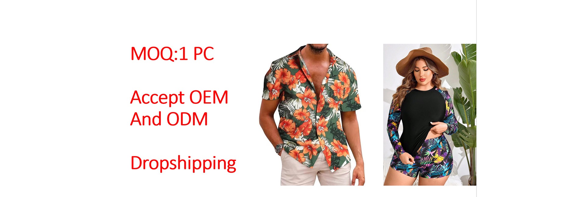 We are manufacture with T-shirt, Hoodie,Men Set, Jacket, Pant, Women Set, Women Dress, Bikini,and so on, more than 8 years. We accept Customization and Sample. We accept ODM and OEM. Accept Dropshipping.
